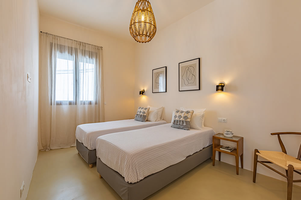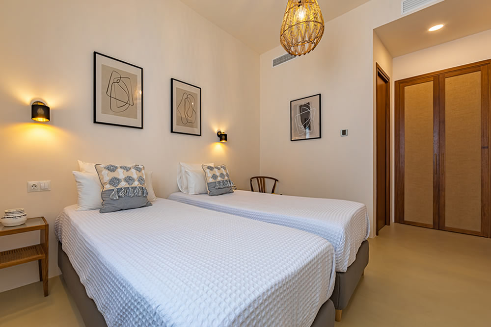 Les lits (90*200 cm) peuvent être rapprochés pour créer un double. Il y a une armoire intégrée avec lumière encastrée.