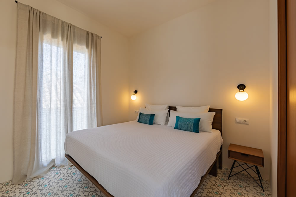 La chambre dispose de deux balcons français donnant sur une rue étroite et calme.
