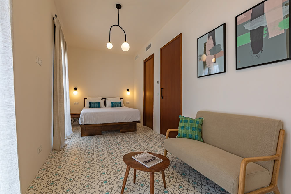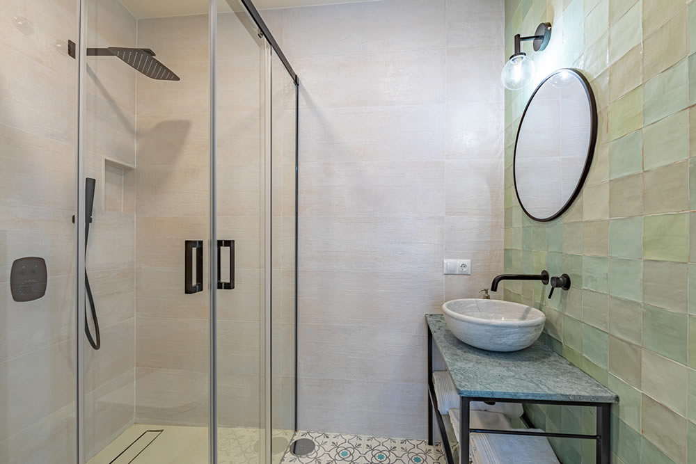 Chambre double au deuxième étage qui dispose d'une salle de bain avec douche à l'italienne, lavabo et WC.