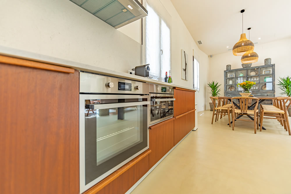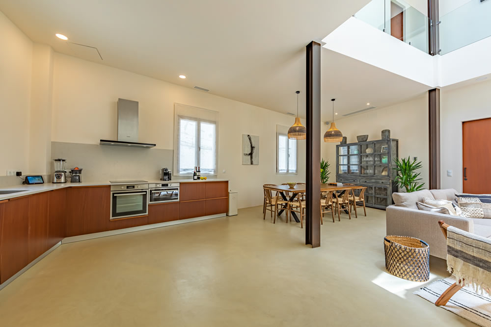 Cuisine moderne bien équipée, avec réfrigérateur/congélateur, micro-ondes, four, lave-vaisselle, machine Nespresso, presse-agrumes orange et mixeur à smoothie, et très spacieuse.
